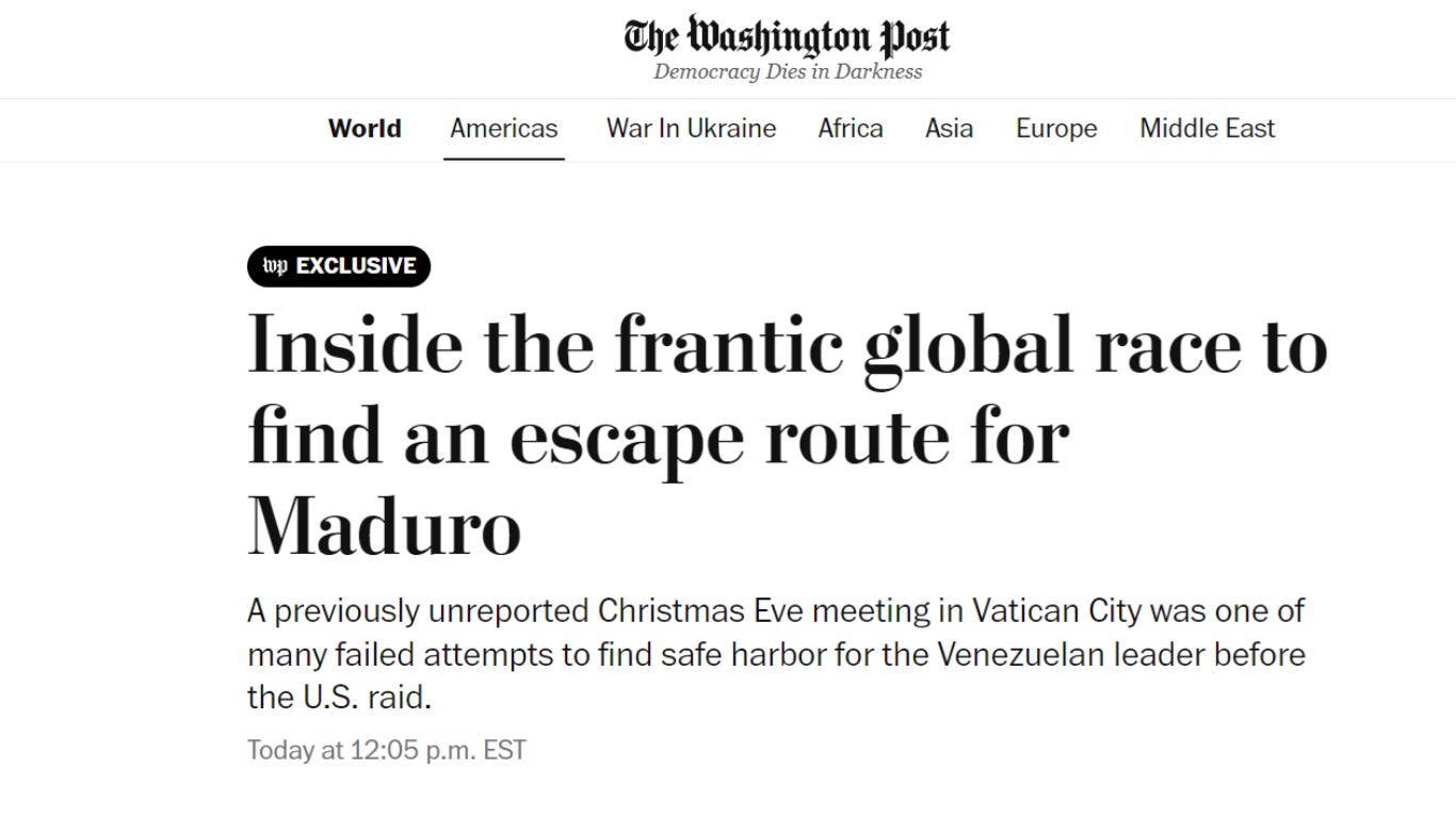 El Washington Post acaba de publicar una pieza de investigación extraordinaria -de esas que no solo informan, sino que se leen como una novela de espionaje- sobre las gestiones internacionales desplegadas para evitar que la crisis venezolana desembocara en una acción militar norteamericana. Y el dato más fascinante, el que enmarca toda la historia, ocurre en la víspera de Navidad, en el corazón mismo de la diplomacia vaticana.
